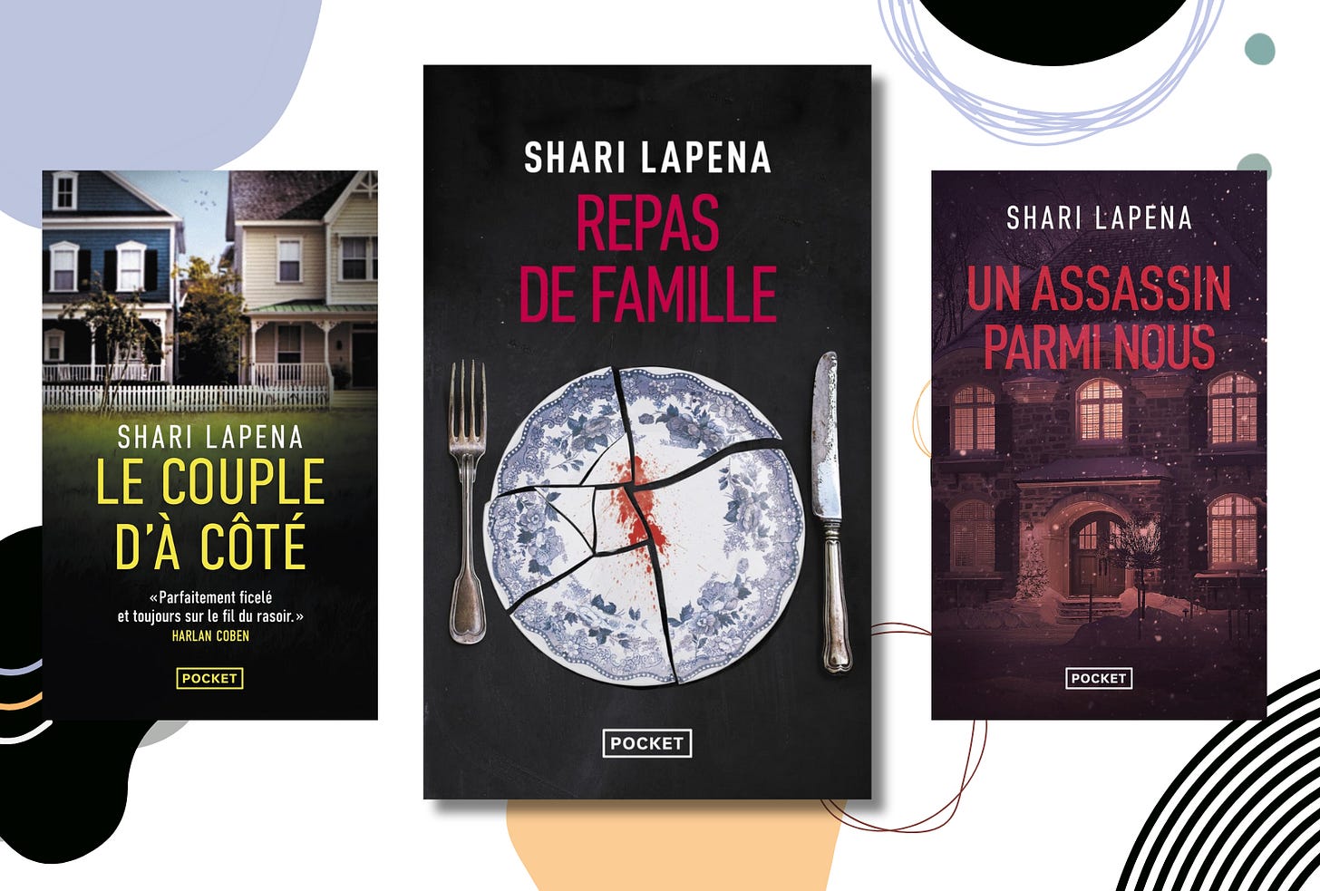 Un assassin parmi nous : Un couple part en vacances dans un chalet, il y a une tempête de neige, tout le monde se retrouve bloqué dans le chalet et quelqu’un s’amuse à les tuer un par un. Rien de bien original, les rebondissements et même la fin étaient prévisibles. C’est ce roman qui m’a fait découvrir Shari Lapena et malgré ses points faibles, l’ambiance était anxiogène et la lecture assez agréable pour me donner envie de lire ses autres romans.