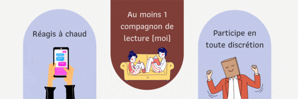 Si tu es en décalé, tu pourras quand même profiter du contenu et des discussions avec moi comme compagnon de lecture.